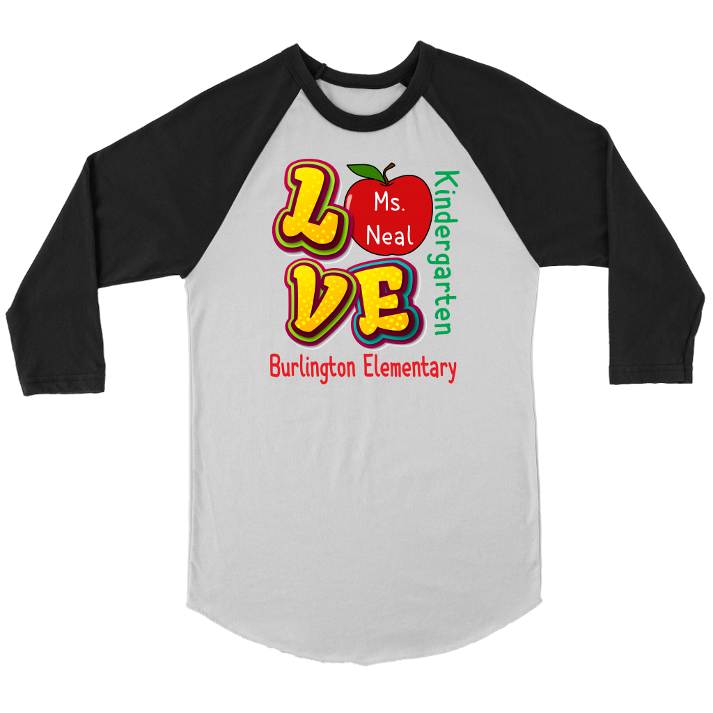 VnSupertramp Personalized Love Apple Women Men Raglan Teacher T-Shirt - Custom Name, School, Grade on Tee Gift