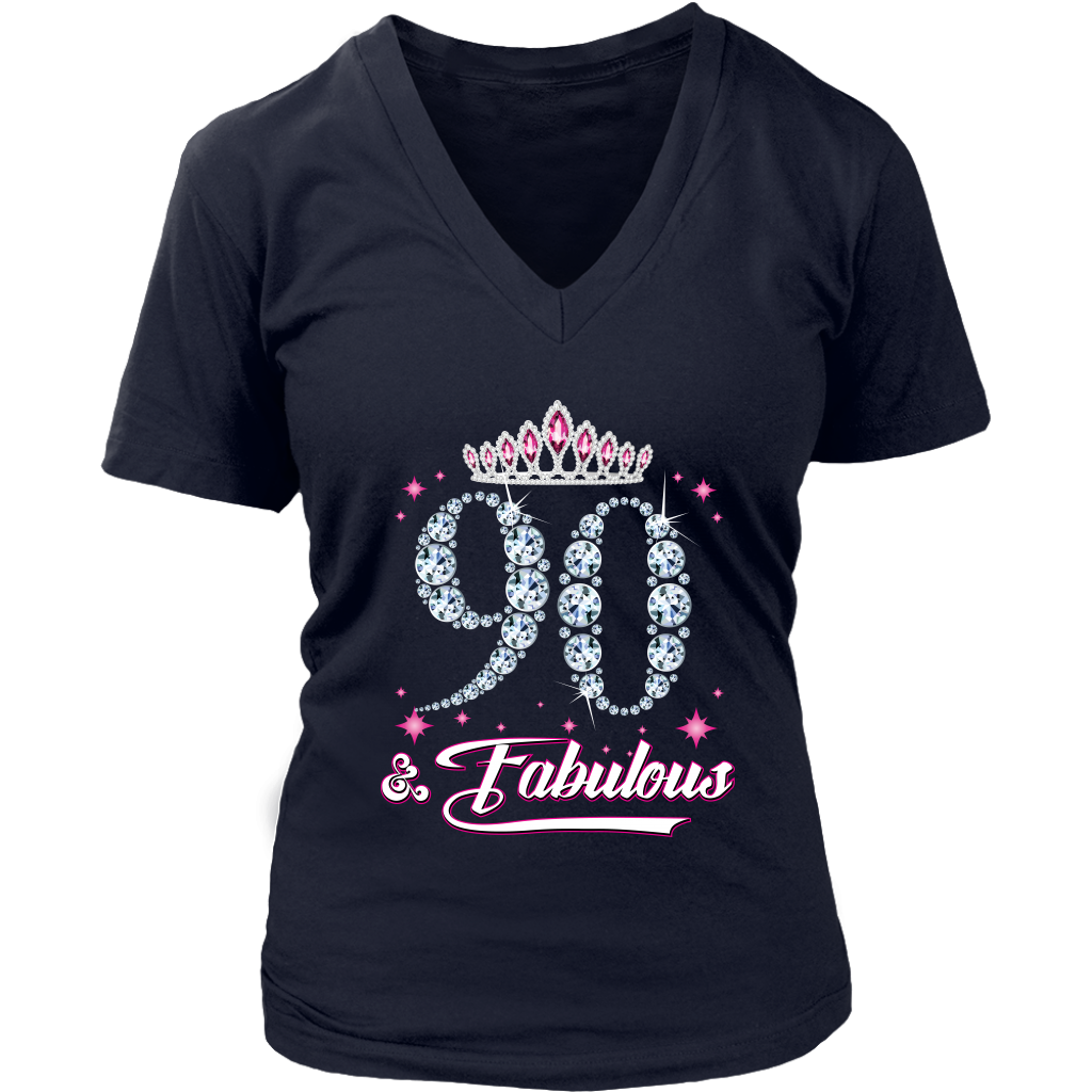 VnSupertramp Ninety And Fabulous V-Neck Shirt Plus Size XL-4XL 90th Birthday