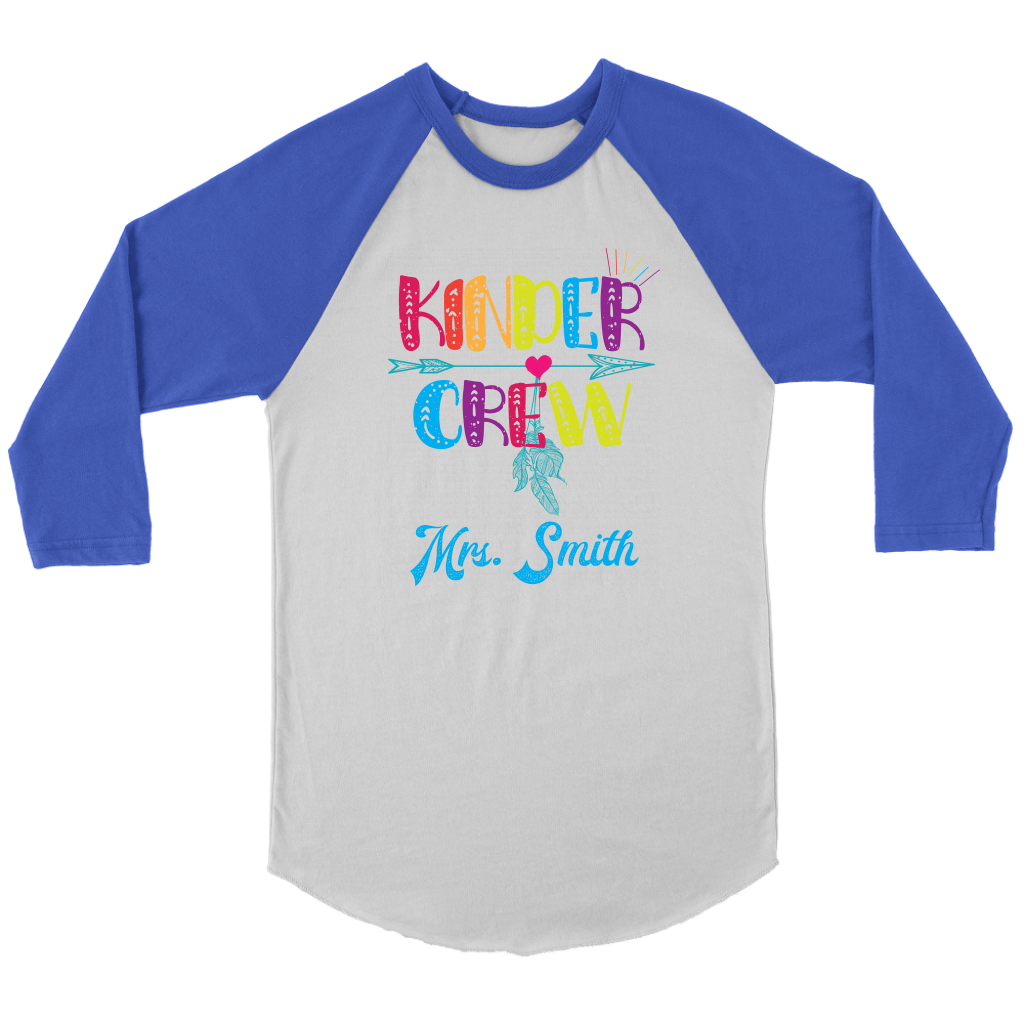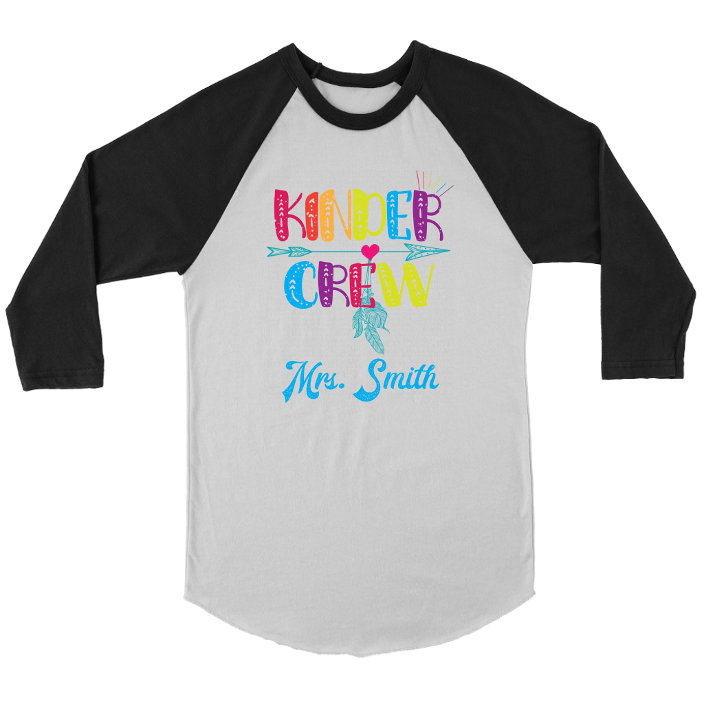 VnSupertramp Personalized Kinder Crew Kindergarten Women Men Teacher Raglan Shirt - Custom Name Back To School
